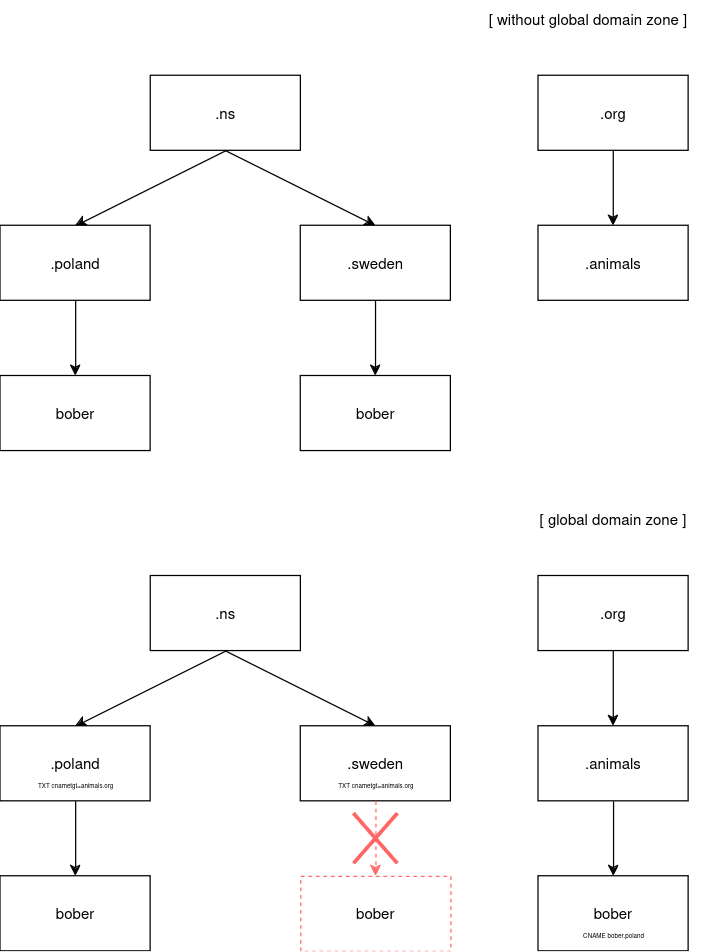 that ensures unique names across multiple domain zones. When this option is enabled, all newly created domains will automatically receive a corresponding alias in the designated global zone. Deleting a domain will also remove its alias from the global zone.