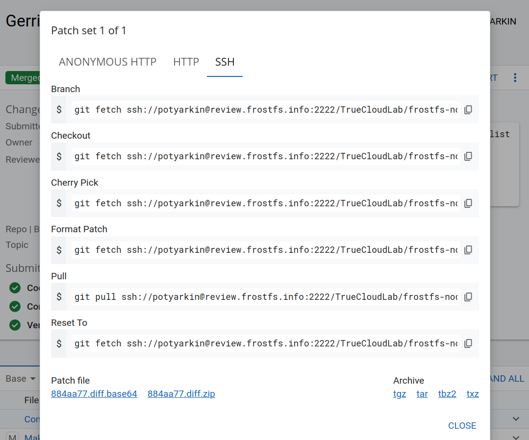 git remote add review ssh://$GERRIT_USERNAME@review.frostfs.info:2222/TrueCloudLab/$REPOSITORY, and save commit-msg hook script to.git/hooks/commit-msg - Some teams may choose to add the steps above to their Makefile